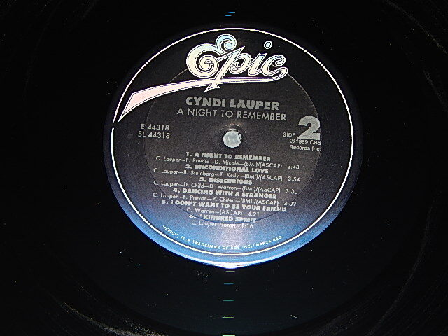 CYNDI LAUPER - A NIGHT TO REMEMBER (With CUSTOM INNER SLEEVE) (Ex+++/MINT) / 1989 US AMERICA ORIGINAL Used LP[EPIC OE-44318]