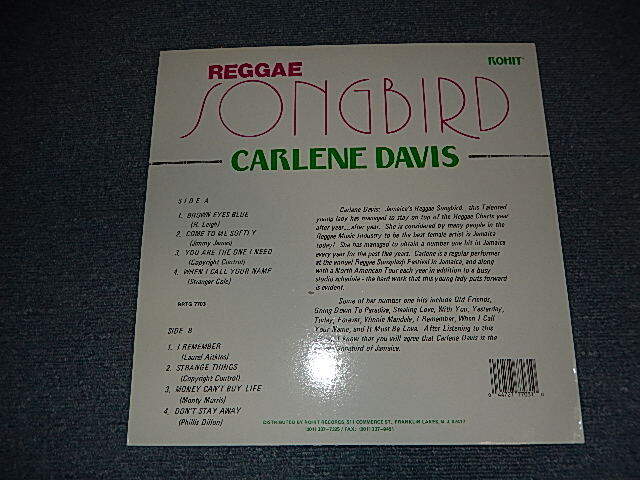 CARLENE DAVIS - REGGAE SONGBIRD (MINT-/MINT-) / 1988 US AMERICA ORIGINAL Used LP[ROHIT RTG-7703]