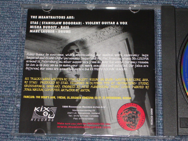 | ARTIST : | THE MEANTRAITORS | | TITLE : | ANGRY HEART | | LABEL : | KIX 4U | | CONDITION | | JACKET | DISK | | BRAND NEW | BRAND NEW | | | No. : | KIXCD-3369 | | OTHERS : | RELEASE YEAR : COUNTRY : 1998 HOLLAND ORIGINA; Brand New CD RUSSIAN PSYCHOBILLY | ※サイト内のすべての画像のコピー・無断転用を禁止しています。 個人・法人様のサイト(ブログ・HP・掲示板等)でのご紹介で使用されたい場合は前もってご連絡下さい  |