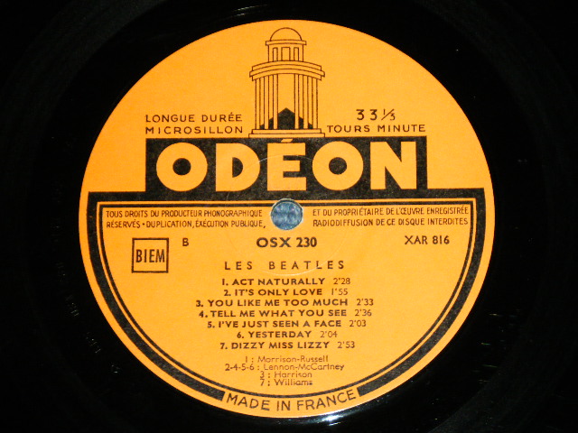 | ARTIST : | THE BEATLES | | TITLE : | chanson du film "HELP" | | LABEL : | ODEON | | CONDITION | | JACKET | DISK | | Ex++ | Ex+++ | WRITING ON BACK COVER | | No. : | OSX-230 | | OTHERS : | 196? FRANCE ONLY ORIGINAL USED LP ULTRA RARE 'ORANGE LABEL' 市場に出回らない超貴重なアイテムです。 |
