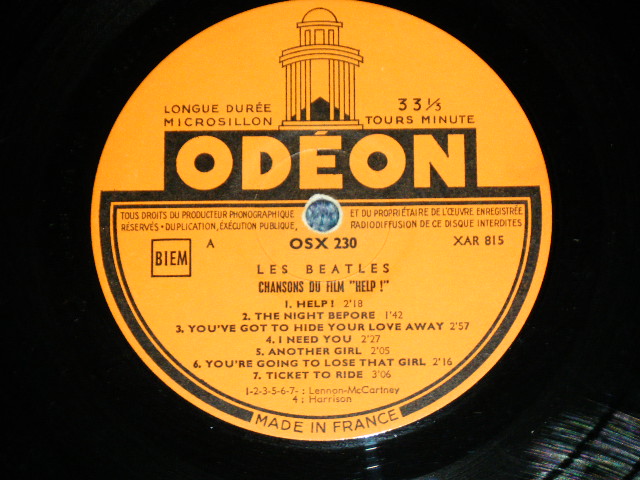 | ARTIST : | THE BEATLES | | TITLE : | chanson du film "HELP" | | LABEL : | ODEON | | CONDITION | | JACKET | DISK | | Ex++ | Ex+++ looks : Ex++ | LIGHT SURFACE HAIRLINE SCRTACHES | | No. : | OSX-230 | | OTHERS : | 196? FRANCE ONLY ORIGINAL USED LP ULTRA RARE 'ORANGE LABEL' 市場に出回らない超貴重なアイテムです。 |