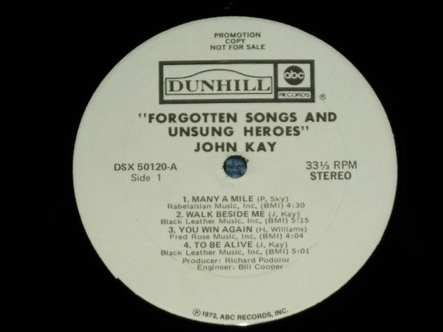JOHN KAY (STEPPENWOLF) - FORGOTTEN SONGS & UNSUNG HEROES (Ex-/Ex+++) / 1972 US AMERICA ORIGINAL "White Label PROMO" Used LP [DUNHILL DSX 50120 / DSX-50120]