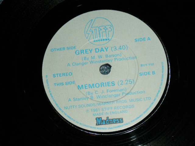 MADNESS - GREY DAY : MEMORIES ( Ex++/Ex+++) / 1981 UK ENGLAND ORIGINAL Used 7"Single with PICTURE SLEEVE [STIFF BUY 112]