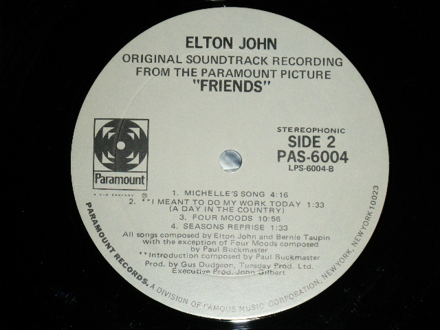 ELTON JOHN ost - FRIENDS ( MINT/MINT ) / 1971 US AMERICA ORIGINAL Used LP [PARAMOUNT PAS-6004]