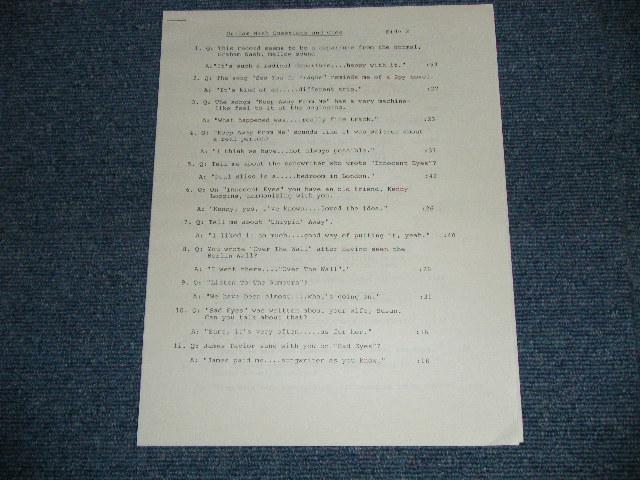 ARTIST : | GRAHAM NASH (HOLLIES,C.S.N.&Y.) | TITLE : | SOLO IN '86 (A CONVERSATION ) PROMO ONLY "RADIO SHOW INTERVIEW" with QUE SHEET ( PROMO ONLY LP ) |