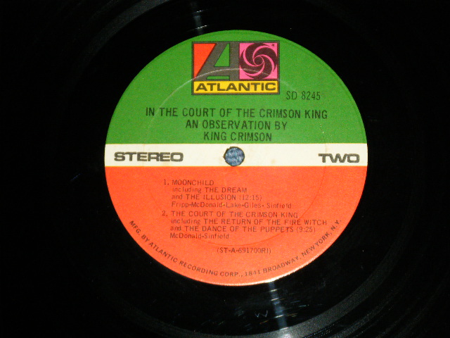 KING CRIMSON - IN THE COURT OF CRIMSON KING (:Matrix # ST-A-691699-C 1-1 / ST-A-691700-C 1-1)(Ex+/Ex+++) / 1969 US ORIGINAL 1st Press "1841 BROADWAY Credit Label" LABEL LP [ATLANTIC SD-8245]